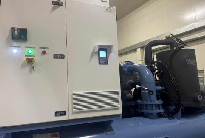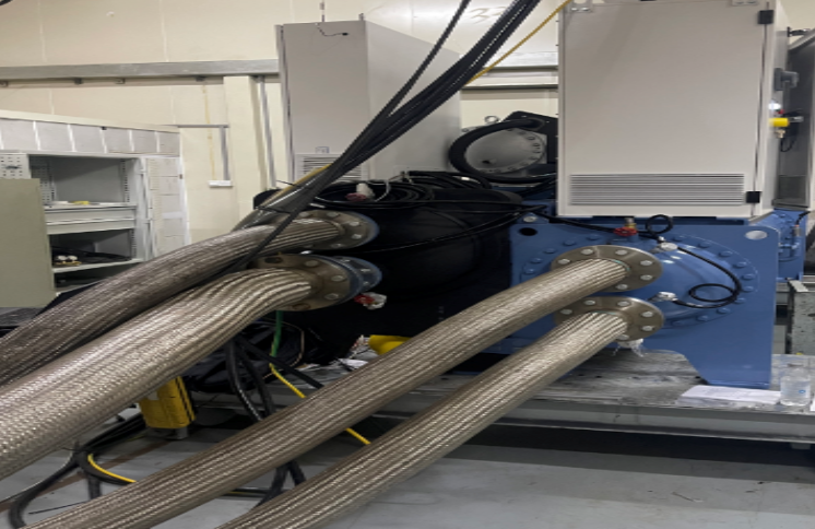 根據磁懸浮電機的電機參數,我司選擇了額定電流300A的160KW液態風冷變頻器。另應客戶要求在變頻器和電機之間加裝正弦波濾波器。